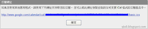 或是直接點選ICAL icon,跳出視窗,將該網址字串複製