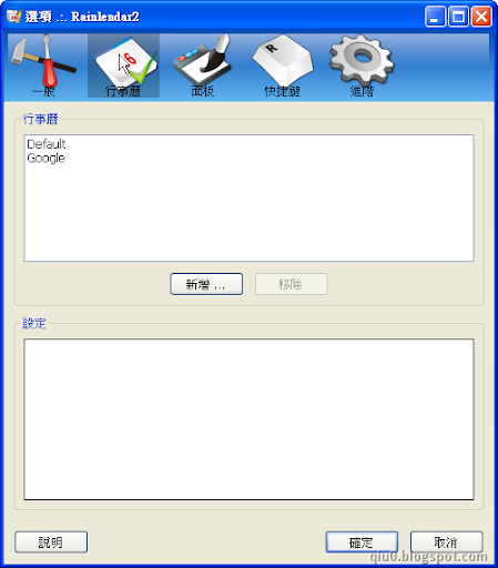 到 Rainlendar─>選項,選擇行事曆,並新增一個行事曆