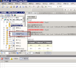 後來看到這篇文章ACC2002:常見的資料頁配置錯誤,用了最簡單的方式,就把VS2005關掉再打開就ok了猜想可能剛在連結DataSource的時候被鎖定了吧